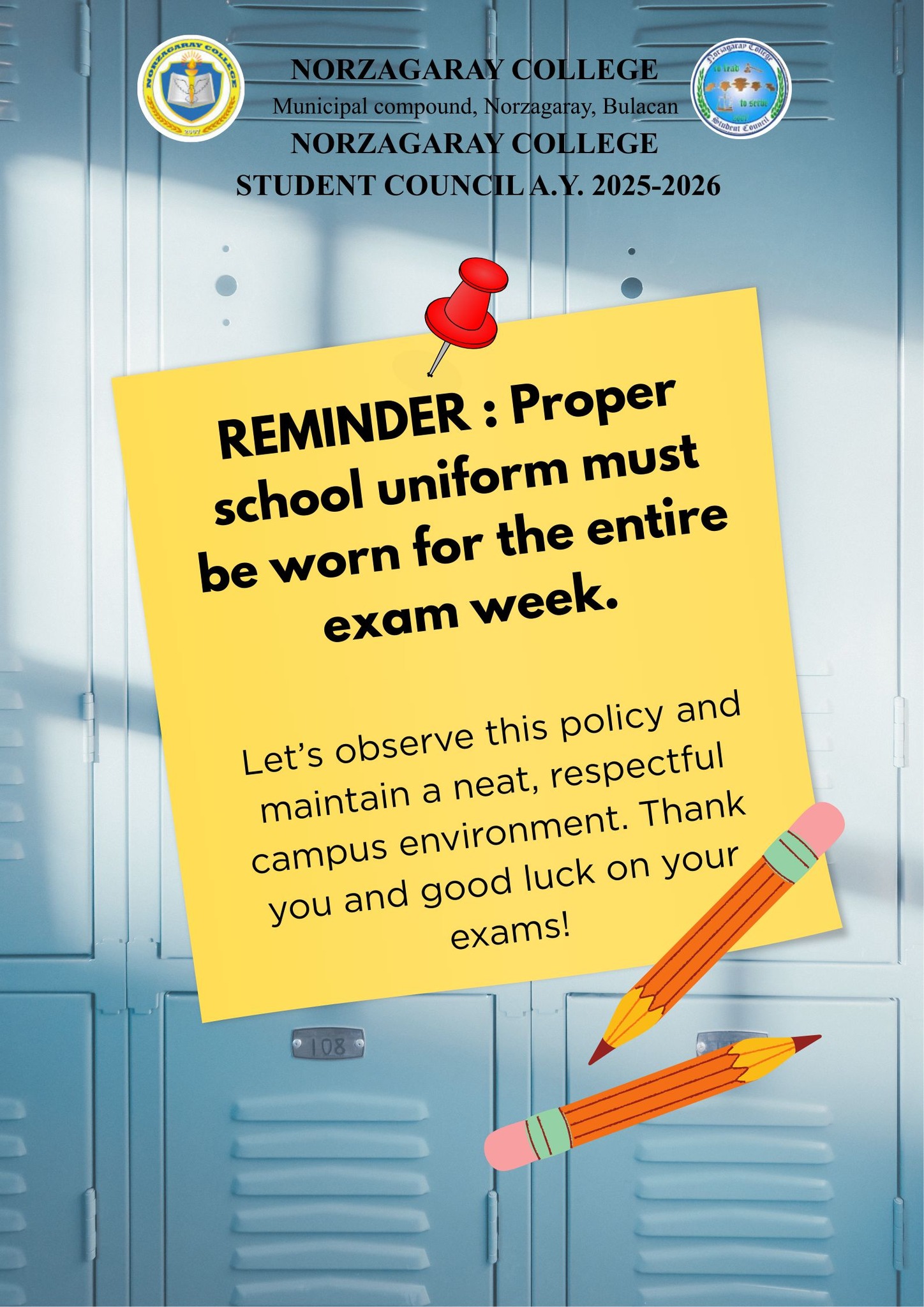 Norzagaray College is a government institution for the development of manโs potentials both as an individual and as a member of society. Likewise, it is established to help the rural underprivileged and marginalized members of the community.