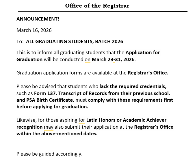 TO ALL GRADUATING STUDENT BATCH 2026